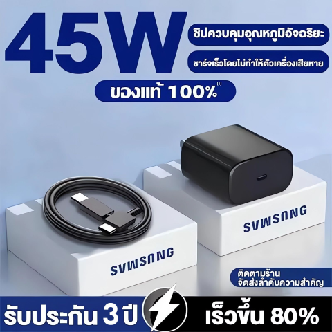 ชุดชาร์จเร็วสุด สำหรับ Samsung 25W / 45W ครบเซ็ตทั้งหัวชาร์จเร็วและสายชาร์จ Type-C ออกแบบมาเพื่อการชาร์จที่ไว เสถียร และใช้งานได้จริงในชีวิตประจำวัน เหมาะสำหรับผู้ใช้มือถือ Samsung ที่ต้องการอัปเกรดการชาร์จให้เร็วขึ้น รองรับรุ่นยอดนิยมอย่าง S23, S21, S20 และรุ่นที่ใช้งานพอร์ต USB-C ได้อีกหลากหลาย พร้อม รับประกัน 1 ปี ใช้งานได้มั่นใจยิ่งขึ้น ในราคาสุดคุ้มเพียง 8.04