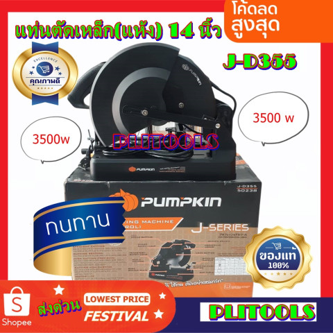 PUMPKIN แท่นตัดเหล็ก (แห้ง) 14 นิ้ว รุ่น 50238/J-D355 แท่นตัดเหล็กสายงานช่างที่ “ตัดเร็ว ตัดดี ใช้ทน” ออกแบบมาเพื่อการตัดอย่างสมาร์ทด้วยระบบตัดแบบแห้ง ใช้ใบเลื่อยแทนใบไฟเบอร์ ช่วยลดสะเก็ดไฟ งานดูเรียบร้อย และตัดได้จำนวนชิ้นงานมากกว่า เหมาะทั้งงานหน้างานและงานในโรงงานที่ต้องการความคุ้มค่าและประสิทธิภาพสูง