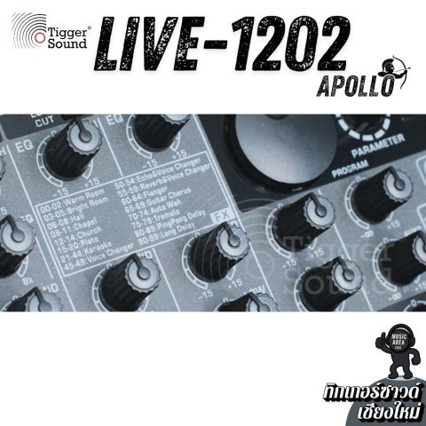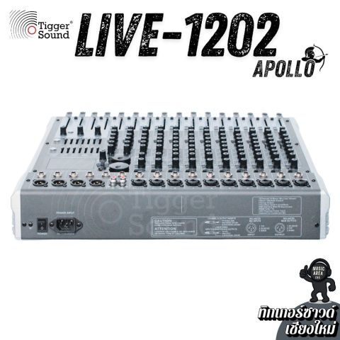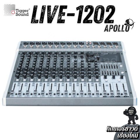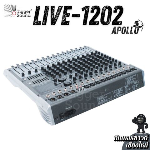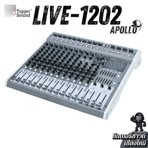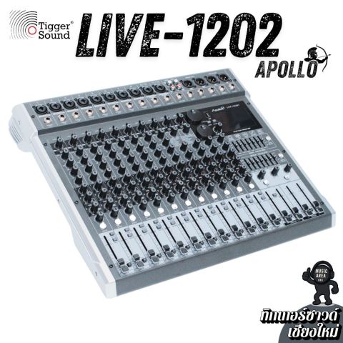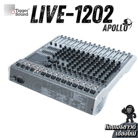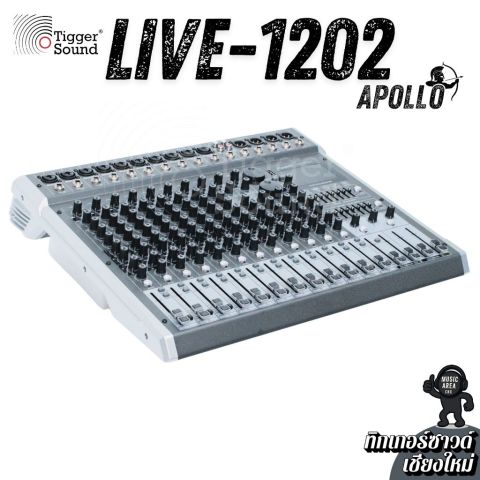มิกเซอร์ Apollo Live-1202BT 12 ช่อง เอฟเฟ็คแท้ ฟังก์ชันครบเครื่อง จากร้านทิกเกอร์ซาวด์ (Tiggersound) เชียงใหม่ ในราคา 5,500.00 บาท คือมิกเซอร์อนาล็อคที่ “จบงานสบาย ๆ ในเครื่องเดียว” เหมาะทั้งมือใหม่และมืออาชีพ ใช้งานง่าย ปรับไว คุมเสียงได้อยู่หมัด พร้อมเอฟเฟกต์ในตัวและการเล่นเพลงผ่าน Bluetooth/USB รวมถึงใช้งานเป็น USB Audio Interface ได้