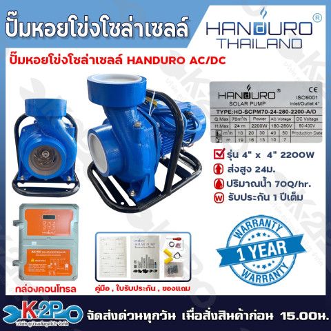 HANDURO ปั๊มหอยโข่ง AC/DC 2200W SOLAR PUMP ท่อน้ำออก 4 นิ้ว รุ่น HD-SCPM70-24-280-2200-A/D ถูกออกแบบมาสำหรับงานสูบน้ำทั้งในบ้านและงานเกษตรกรรมขนาดกลางถึงใหญ่ รองรับการทำงานได้ทั้งไฟบ้าน (AC) และไฟจากแผงโซลาร์ (DC) ให้คุณใช้งานได้ต่อเนื่องแม้ในพื้นที่ที่ไฟฟ้าไม่เสถียรหรือไม่มีไฟฟ้า เข้ากันได้ดีกับระบบโซลาร์เซลล์ ตอบโจทย์ทั้งความคุ้มค่าและประหยัดพลังงาน