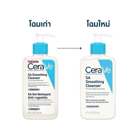 เซราวี CeraVe SA Smoothing Cleanser (236 ml) ผลิตภัณฑ์ทำความสะอาดผิวสำหรับผู้ที่มีผิวหยาบกร้าน ไม่เรียบเนียน ช่วยขจัดสิ่งสกปรกและความมันส่วนเกินได้อย่างมีประสิทธิภาพ พร้อมดูแลเกราะปกป้องผิวให้แข็งแรง เหมาะสำหรับใช้ได้ทั้งผิวหน้าและผิวกาย ให้ผิวรู้สึกสะอาด นุ่ม และดูเรียบเนียนขึ้นโดยไม่แห้งตึง