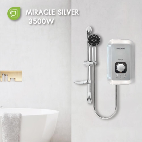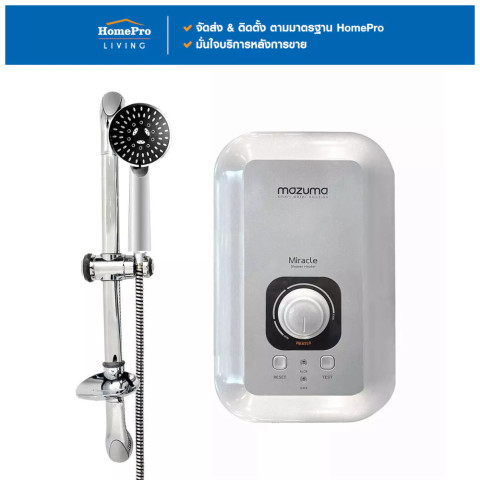 เติมเต็มประสบการณ์อาบน้ำอุ่นสบายอย่างมั่นใจด้วย [ติดตั้ง*แบบจั๊มไม่รวมอุปกรณ์] MAZUMA เครื่องทำน้ำอุ่น MIRACLE 3500 วัตต์ สีเงิน พร้อมบริการติดตั้งโดยทีมช่างมืออาชีพจาก HomePro ติดตั้งง่าย ดีไซน์ทันสมัย ลงตัวกับห้องน้ำทุกสไตล์ มาพร้อมระบบความปลอดภัยรอบด้าน ให้คุณอาบน้ำอุ่นได้อย่างอุ่นใจในทุกๆ วัน