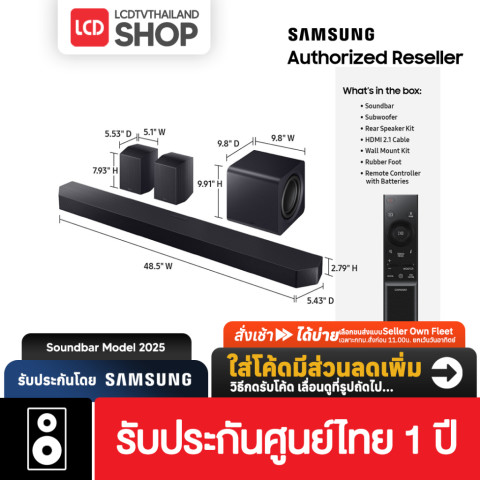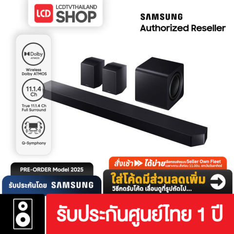 (พร้อมจัดส่ง) Samsung HW-Q990F 11.1.4 ch Q-series Soundbar 2025 ใหม่ล่าสุด ยกระดับความบันเทิงในบ้านให้ “เหมือนอยู่ในโรงภาพยนตร์” ด้วยซาวด์บาร์เรือธงที่มาพร้อม Subwoofer + Rear Speaker ครบชุด ให้เสียงโอบล้อมรอบทิศทางแบบ 3 มิติ ทั้งดูหนัง ฟังเพลง และเล่นเกม พร้อม รับประกันศูนย์ไทย ในราคาคุ้มค่า 23,994.00 บาท