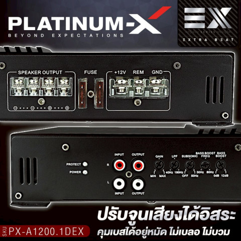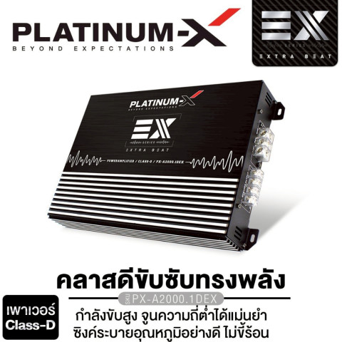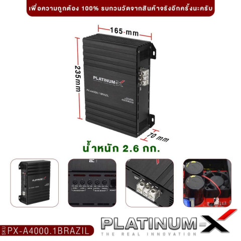PLATINUM-X เพาเวอร์แอมป์ CLASS D รุ่น PX-A2000.1DEX / PX-A3100.1DEX / PX-A4000.1BRAZIL แอมป์บราซิล 1 เครื่อง ในราคา 4,934.90 บาท ทางเลือกสายเบสที่ต้องการ “แรงจริง ขับซับมันส์จริง” ด้วยโครงสร้างแอมป์คลาส D ที่ให้ประสิทธิภาพสูง ซิงค์ระบายความร้อนดี ติดตั้งได้หลากหลายตำแหน่ง เหมาะสำหรับระบบเครื่องเสียงรถยนต์ที่เน้นพลังขับซับวูฟเฟอร์โดยเฉพาะ