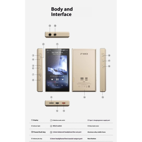 เอาต์พุตอนาล็อก: 3.5mm (หูฟัง / Line out / Coaxial out), 4.4mm Balanced (หูฟัง / Line out)