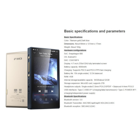 ขับเคลื่อนด้วย Qualcomm Snapdragon 680 (Octa-core 6nm) ทำงานร่วมกับ Android 13 ให้ประสบการณ์ใช้งานที่ลื่นไหล เปิดแอปเพลง/สตรีมมิ่งได้คล่องตัว พร้อมการจัดการพลังงานที่ดีสำหรับการฟังต่อเนื่อง4x DAC CS43198 เสียงใส รายละเอียดสูง โครงสร้างบาลานซ์เต็มรูปแบบ