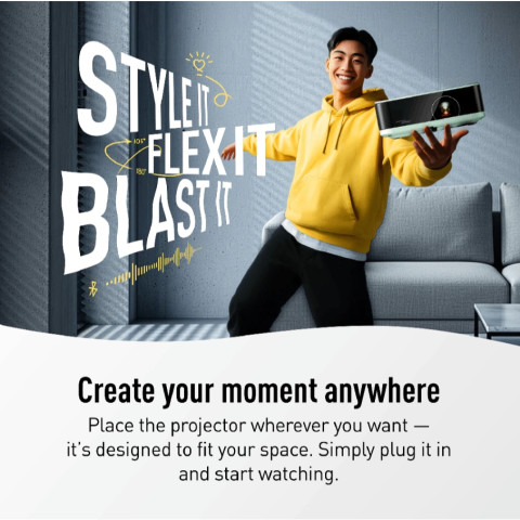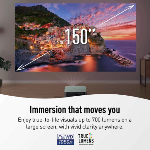 ภาพใหญ่สะใจในบ้าน รองรับขนาดภาพ 30 – 150 นิ้ว เปลี่ยนห้องนั่งเล่นให้เป็นมินิโฮมเธียเตอร์ได้ทันที