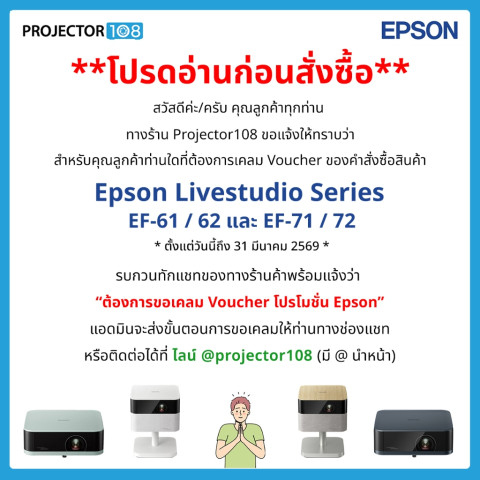 โปรโมชั่นพิเศษ: รับฟรี Lotus Voucher มูลค่า 5,000 บาท เมื่อซื้อ Epson Lifestudio Pop EF-61G ตั้งแต่วันนี้ – 31 มีนาคม 2569 (เงื่อนไขเป็นไปตามที่ร้านกำหนด)
