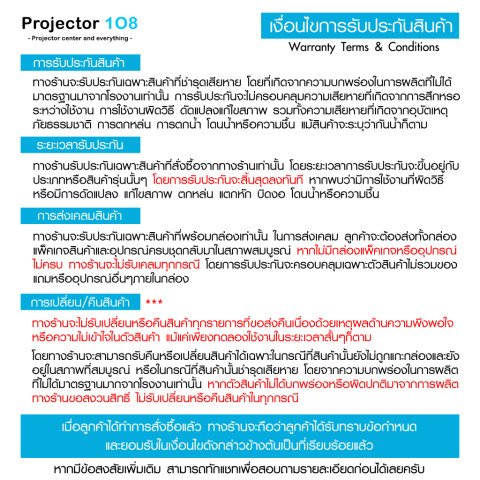 หลักฐานการเคลม: กรุณาถ่ายวิดีโอขณะแกะกล่องพัสดุ เพื่อใช้เป็นหลักฐานในการเปลี่ยน/คืน/เคลมสินค้า หากไม่มีวิดีโอที่ชัดเจน ขอสงวนสิทธิ์ไม่รับเคลมหรือคืนเงินทุกกรณี
