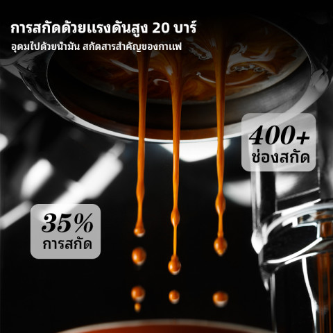แรงดัน 20 บาร์ สกัดกาแฟได้เข้มข้น หอมชัด ครีมม่านุ่มสวย