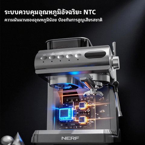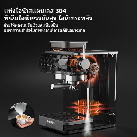 NERF เครื่องชงกาแฟสด แรงดัน 20 บาร์ ทางเลือกสำหรับคนรักกาแฟที่อยากได้รสชาติแบบคาเฟ่ในบ้าน ชงได้ทั้งเมนูร้อนและเย็น พร้อมระบบตีฟองนมแรงดันสูง ให้ฟองเนียนละเอียด เหมาะสำหรับเอสเพรสโซ ลาเต้ คาปูชิโน และเมนูนมหลากหลายแบบ ใช้งานสะดวกด้วยระบบอัตโนมัติ ช่วยให้การชงกาแฟเป็นเรื่องง่ายในทุกวัน