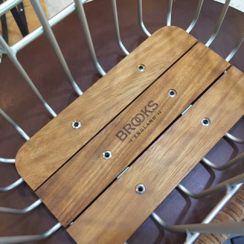 ตัวตะกร้าเป็นโครงอลูมิเนียมน้ำหนักเบา พื้นตะกร้าบุด้วยไม้พร้อมยิงโลโก้ BROOKS ด้วยเลเซอร์อย่างประณีต เพิ่มความโดดเด่นแบบมีดีเทล มือจับหุ้มหนังลุควินเทจ จับถนัดมือ และที่สำคัญคือถอดตะกร้าออกได้รวดเร็วด้วยระบบ KlickFix แค่กดปุ่มเดียวก็ปลดออกได้ทันที เหมาะทั้งใช้ใส่ของระหว่างปั่น หรือถอดถือเข้าไปได้เลยเมื่อถึงจุดหมาย