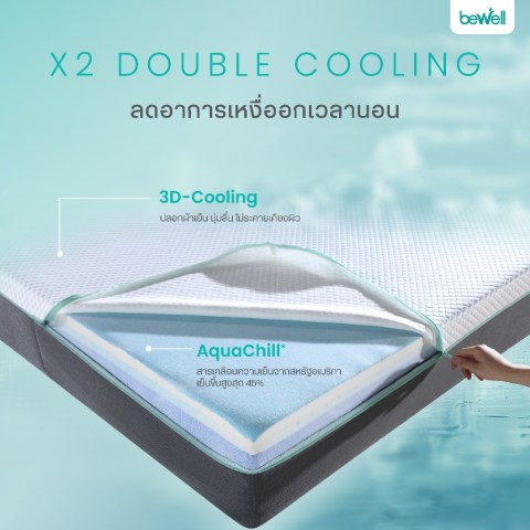 เย็นสบาย X2 ผ้าหุ้ม Cooling + AquaChill® ช่วยถ่ายเทความร้อน ลดความอับชื้น คุมอุณหภูมิให้คงที่ตลอดคืน