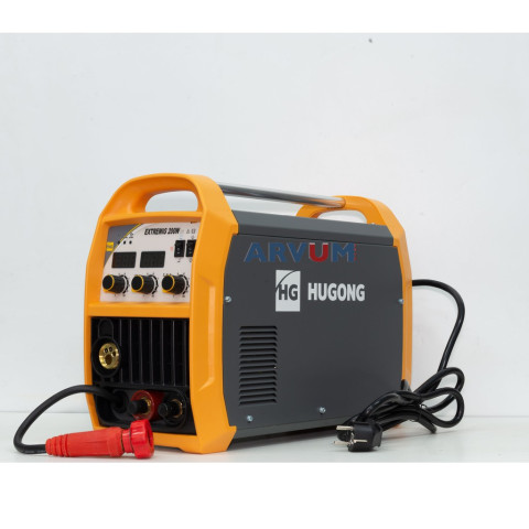 HUGONG EXTREMIG 200W III เครื่องเชื่อมไฟฟ้าแบบพกพา 3 ระบบ MIG / STICK(MMA) / Lift TIG ให้พลังเชื่อมครบจบในเครื่องเดียว เหมาะสำหรับงานเชื่อมเหล็กและสแตนเลส ทั้งงานซ่อมบำรุง งานประกอบโครงสร้าง และงานช่างทั่วไป มาพร้อมเทคโนโลยีอินเวอร์เตอร์ IGBT รุ่นใหม่ล่าสุด ช่วยให้การเชื่อมนิ่ง อาร์คสวย ประหยัดไฟ และใช้งานได้คล่องตัว