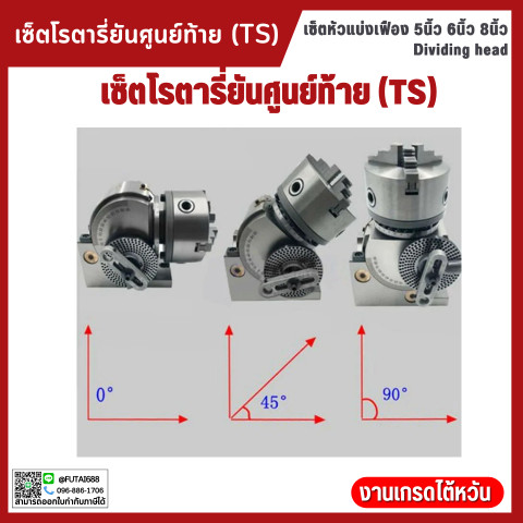การใช้งาน: แบ่งองศา/แบ่งเฟือง/ตั้งศูนย์ร่วมกับยันศูนย์ท้าย (สำหรับงานเครื่องจักรกล)