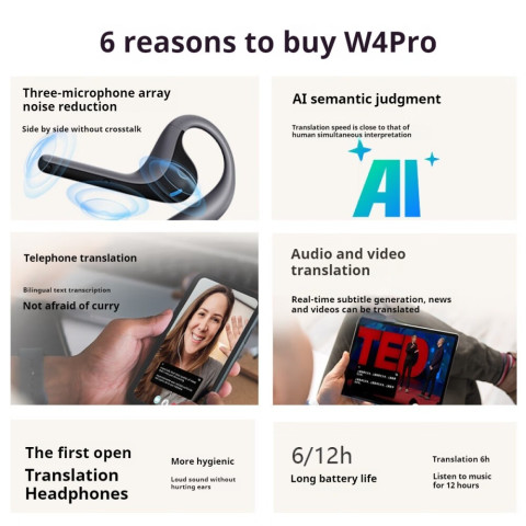 【พร้อมส่ง】Timekettle W4 Pro AI Smart Translation Earphone หูฟังแปลภาษาอัจฉริยะที่เกิดมาเพื่อคนเรียนต่อต่างประเทศ เรียนคอร์สออนไลน์ เดินทางท่องเที่ยว หรือประชุมธุรกิจ ให้การสื่อสารข้ามภาษาเป็นเรื่องง่ายขึ้นในทันที แปลได้รวดเร็ว ชัดเจน และใช้งานสะดวกแบบไม่ยุ่งยาก