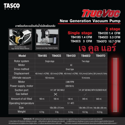 สเปคสินค้า (รุ่นที่จัดส่ง: TB4XFD TWO STAGE 10.7 CFM)