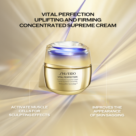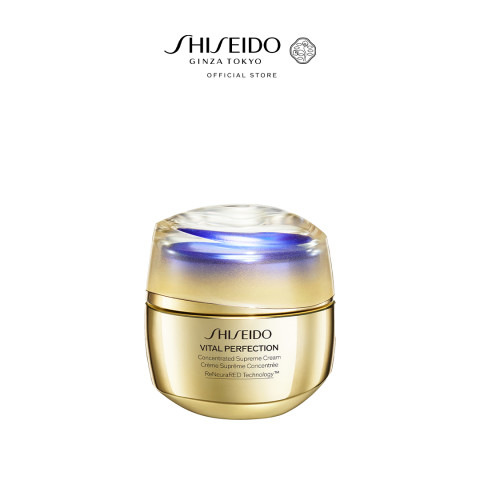SHISEIDO VITAL PERFECTION CONCENTRATED SUPREME CREAM 50ML มอยเจอร์ไรเซอร์สูตรเข้มข้นระดับพรีเมียม ที่สุดของครีมบำรุงเพื่อผิวดูอ่อนเยาว์ ยกระดับการดูแลสัญญาณความร่วงโรยแห่งวัยอย่างล้ำลึกและทรงประสิทธิภาพ เพื่อผิวดูเฟิร์มกระชับได้รูปสวย แลดูเปล่งปลั่งกระจ่างใสกว่าที่เคย พร้อมกลิ่นหอมอ่อนๆ ให้ความรู้สึกหรูหราในทุกครั้งที่ใช้