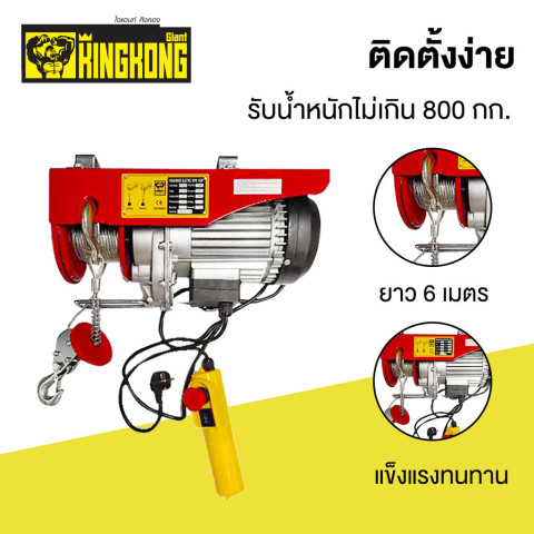 GIANT KINGKONG รอกสลิงไฟฟ้า รุ่น HGS-B800 PA 800A (800 กก. x 6 เมตร) สีแดง ราคา 6,374.40 บาท