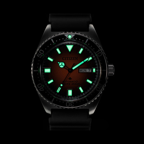 นาฬิกาดำน้ำสายลุยจากตระกูล CITIZEN Promaster มาพร้อมเครื่อง Automatic ใส่แล้วได้อารมณ์นาฬิกากลไกแท้ๆ เดินนุ่ม เท่ คลาสสิก ใช้งานได้จริงทั้งในชีวิตประจำวันและกิจกรรมทางน้ำ โดดเด่นด้วยมาตรฐาน ISO 6425 สำหรับนักดำน้ำ และกันน้ำลึกถึง 200 เมตร พร้อมฟังก์ชันครบอย่าง Hacking Function และช่องแสดง วัน-วันที่ อ่านง่าย