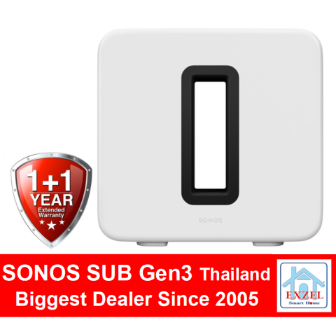 Sonos SUB Gen 3 (Black / White) ซับวูฟเฟอร์ไร้สายระดับพรีเมียม เติมพลังเบสให้ระบบ Sonos ของคุณได้ทันที—ลงลึก หนักแน่น แต่คุมได้ดี ลดอาการสั่นและเสียงก้องของตู้ลำโพงด้วยดีไซน์ Force-Cancelling ให้คุณสัมผัสรายละเอียดเสียงย่านต่ำที่ชัดขึ้น ทั้งดูหนัง เล่นเกม และฟังเพลง
