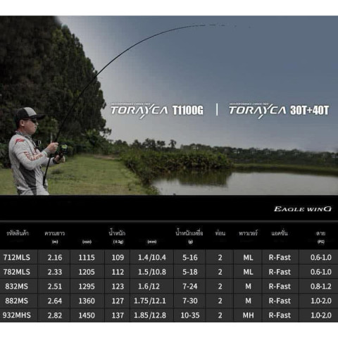 คันเหยื่อปลอม งานชายฝั่ง Lureleader รุ่น Eagle Wing แบล๊งค์ TORAYCA T110G น้ำหนักเบา พิเศษสำหรับสายตีเหยื่อปลอมที่ต้องการคันไว ตีไกล คุมเหยื่อสนุก ใช้งานนานๆ ไม่เมื่อยแขน มาพร้อมแอคชั่น R-Fast ตอบสนองฉับไว เหมาะทั้งงานอาจิชายฝั่ง ตกหมึก และเคาะบ่อ/เคาะกะพงตามสเปคที่เลือก