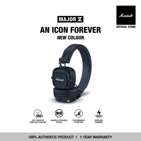 [NEW COLOUR] MARSHALL Major V Bluetooth สี Midnight Blue หูฟังครอบหูไร้สายระดับไอคอนจาก Marshall ที่มาพร้อมโทนสีใหม่สุดเท่ ให้เสียงเอกลักษณ์แบบ Marshall ครบทุกมิติ เบสหนักแน่น กลางนุ่ม ฟังสบาย และแหลมชัดใส เหมาะทั้งฟังเพลงทำงาน เดินทาง หรือใช้ทุกวันแบบยาว ๆ