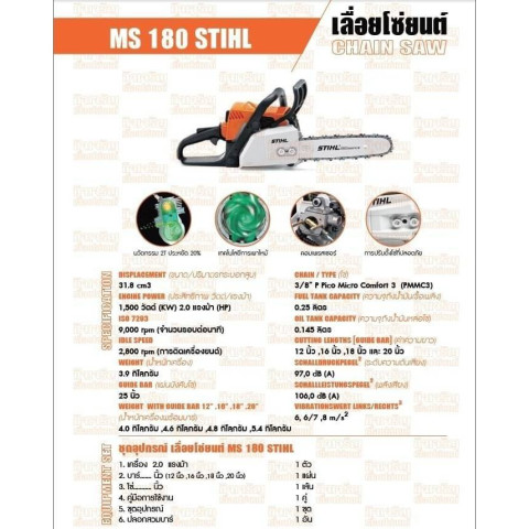 เครื่องเลื่อยโซ่ยนต์ STIHL MS180 (2.0 แรงม้า) 1 เครื่อง