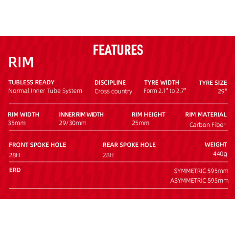 คาร์บอน Toray T700 & T800 น้ำหนักเบาแต่แข็งแรง ช่วยให้ล้อเร่งง่ายและคุมรถมั่นใจในเส้นทาง XC