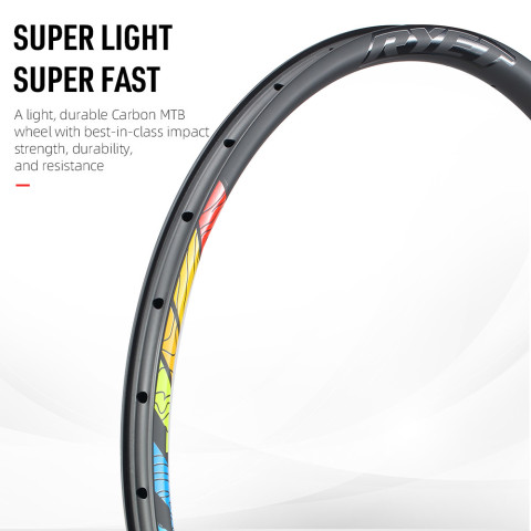 RYET 29er เต็มคาร์บอน MTB ขอบ 35 มม. (XC) Hookless Tubeless Ready คือขอบล้อคาร์บอนพรีเมียมสำหรับสาย XC ที่ต้องการความเบา ความแข็งแรง และการตอบสนองที่ไวเป็นพิเศษ ผลิตจากคาร์บอน Toray T700 & T800 เกรดพรีเมียม ช่วยให้ปั่นเร่งออกตัวและไต่เนินได้คล่อง พร้อมดีไซน์ขอบแบบ Hookless และ Tubeless Ready เพื่อฟีลลิ่งที่นุ่มแน่น เกาะทางดี และลดโอกาสยางรั่วจากยางใน เหมาะสำหรับชุดล้อ MTB 29 นิ้วและการใช้งานกับดิสก์เบรก/แกน Boost ตามมาตรฐานยุคใหม่
