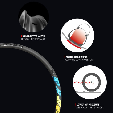 ขอบกว้างนอก 35 มม. รองรับยางหน้ากว้างได้ดี เพิ่มความเสถียร เข้าโค้งมั่นคง
