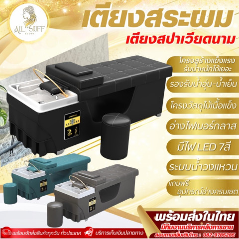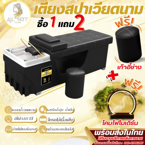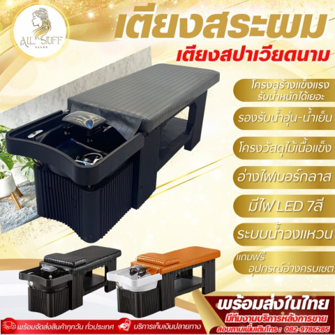 Shampoo Bed เตียงสปาเวียดนาม (Vietnam Spa Bed) เตียงสระผมมัลติฟังก์ชัน พร้อมอ่างสระเกรดพรีเมียม รองรับน้ำร้อน-น้ำเย็น และ แถมฟรีเก้าอี้ช่าง จัดเต็มทั้งสระผม นวดศีรษะ สปาผม นวดตัว ไปจนถึงงานทำเล็บในตัว เหมาะสำหรับร้านที่อยากยกระดับบริการให้ครบจบในเตียงเดียว