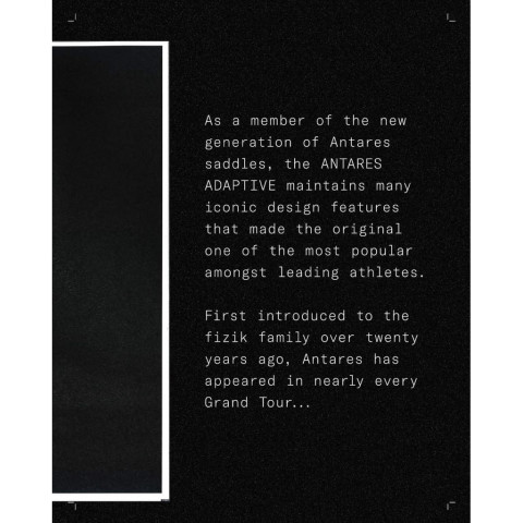 เบาะ/อาน Fizik Vento Antares R1 Adaptive คือวิวัฒนาการของเบาะทรงบางเฉียบสายแข่งจากตระกูล Antares ที่ออกแบบมาเพื่อ ประสิทธิภาพสูงสุด ให้ความคล่องตัวในการขยับตัวบนอาน พร้อมยกระดับความสบายด้วยเทคโนโลยี Adaptive 3D-printed padding ช่วยรองรับแรงกดและแรงกระแทกแบบ “พอดีเป็นโซน” ให้คุณปั่นได้ยาวนาน มั่นใจทุกการเร่งและการส่งกำลัง