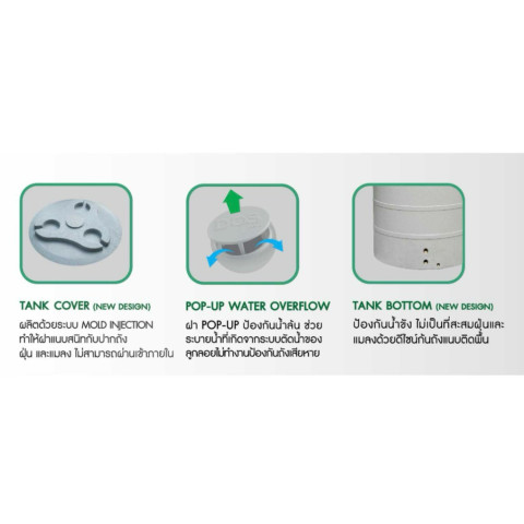 ถังเก็บน้ำรุ่นนวัตกรรมเพื่อความสะอาดและความปลอดภัยขั้นสูงจาก DOS ที่มาพร้อมเทคโนโลยี DOS Ag+ Advance Silver Combac Anti-Microbial KV ช่วยกำจัดและยับยั้งเชื้อโรคบนผิวสัมผัสน้ำภายในถัง ให้คุณมั่นใจในน้ำใช้ทุกวัน เหมาะสำหรับบ้านพักอาศัย อาคารสำนักงาน ร้านค้า หรือพื้นที่ที่ต้องการสำรองน้ำอย่างถูกสุขอนามัย