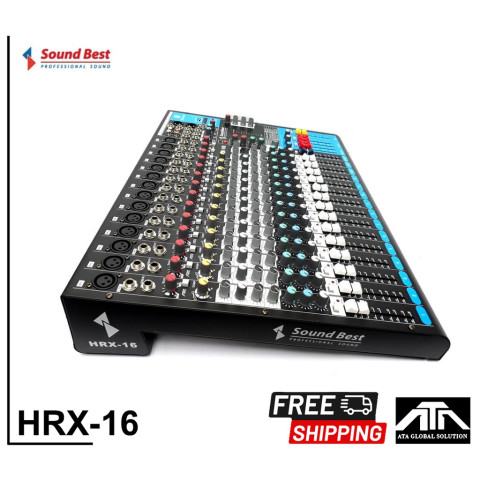 MIXER SOUNDBEST HRX16 (SoundBest HRX-16) มิกซ์เซอร์ซีรีส์ HRX ที่รวมฟังก์ชันการมิกซ์เสียงระดับงานอีเวนต์/เวทีไว้ครบในเครื่องเดียว ให้เสียงชัด คุมโทนง่าย พร้อมระบบคอมเพรสเซอร์ในตัวและเอฟเฟค DSP แท้ 16 โปรแกรม เหมาะทั้งงานแสดงสด งานประชุม ห้องซ้อม หรือชุดเครื่องเสียงเคลื่อนที่ และยังมาพร้อมปีกยึดแร็คเหล็กหนา แข็งแรง ติดตั้งเข้าตู้แร็คได้สะดวก