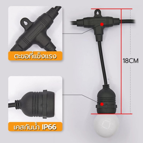 สเปคสินค้าตามรุ่นที่ระบุ: หลอดสีวอร์มขุ่น B, ขั้ว E27, ความยาว 50 เมตร, จำนวนไฟ 150 ดวง