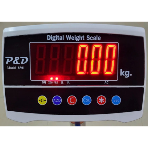 ตาชั่งดิจิตอล / เครื่องชั่งดิจิตอล P&D รุ่น 8801 ขนาดแท่นชั่ง 80 x 80 ซม. รองรับงานชั่งน้ำหนักได้อย่างแม่นยำ เหมาะสำหรับคลังสินค้า โรงงาน ร้านค้า และงานแพ็คกิ้งที่ต้องการความทนทาน ใช้งานง่าย และอ่านค่าน้ำหนักได้ชัดเจนด้วยจอ LED ตัวเลขใหญ่
