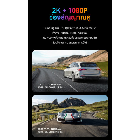 [สินค้าพร้อมส่ง] DDPAI N2 Dual Dash Cam กล้องติดรถยนต์คู่หน้าหลัง คมชัดระดับ 2K + 1080P พร้อมจอ IPS 1.9 นิ้ว ดูภาพและตั้งค่าได้ทันทีแบบเรียลไทม์ รองรับระบบช่วยเตือนการขับขี่ ADAS 2.0 และใช้ ซุปเปอร์คาปาซิเตอร์ เพิ่มความทนทานและความปลอดภัยในการใช้งาน เหมาะสำหรับผู้ที่ต้องการหลักฐานชัด ๆ ทั้งกลางวันและกลางคืน ในราคาคุ้มค่า ฿3,077.43