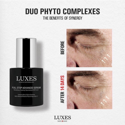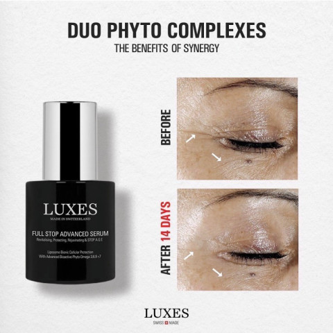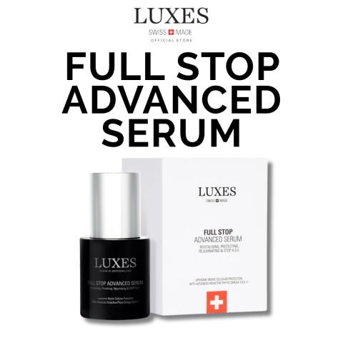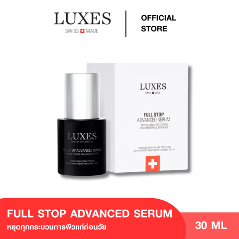 LUXES FULL STOP ADVANCED SERUM 30ml เซรั่มบำรุงผิวระดับแอดวานซ์ที่ออกแบบมาเพื่อช่วย “หยุดยั้งทุกกระบวนการผิวแก่ก่อนวัย” ให้ผิวดูแน่น ฟู เรียบเนียน และเปล่งประกายอย่างมีสุขภาพดี เหมาะสำหรับผู้ที่เริ่มมีสัญญาณริ้วรอย ผิวอ่อนล้า ขาดความชุ่มชื้น หรืออยากยกระดับรูทีนสกินแคร์ให้เห็นผลชัดขึ้น