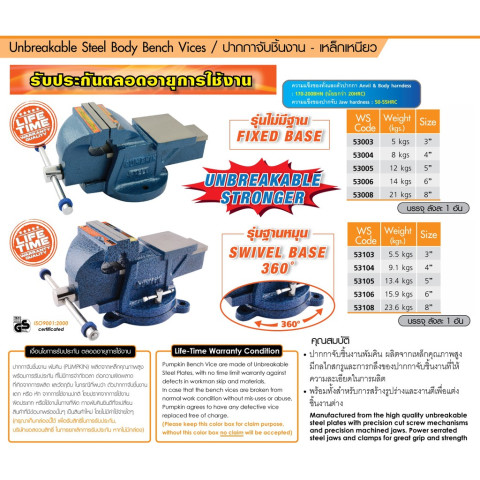 PUMPKIN ปากกาจับชิ้นงานงาฯ เหล็กเหนียว พร้อมฐานหมุนได้ 360 องศา (ขนาด 3 นิ้ว - 8 นิ้ว) ราคา 5,690.00 บาท