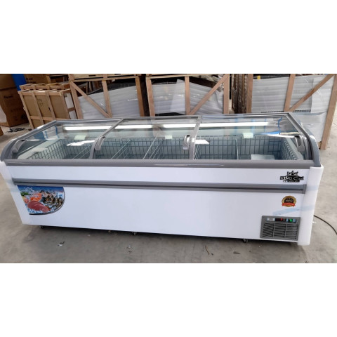 ตู้แช่ซุปเปอร์มาร์เก็ต KingCool รุ่น KX340-GB (36 คิว) ขนาด 250x87x87 ซม. ตู้แช่ดีไซน์กระจกโค้ง โชว์สินค้าเด่นชัด พร้อมไฟ LED ภายใน ช่วยเพิ่มความน่าซื้อ เหมาะสำหรับร้านค้า ซุปเปอร์มาร์เก็ต และผู้ประกอบการที่ต้องการแช่เนื้อสัตว์ อาหารทะเล หรือสินค้าแช่แข็ง/แช่สดให้ดูสะอาดเป็นระเบียบและน่าหยิบ