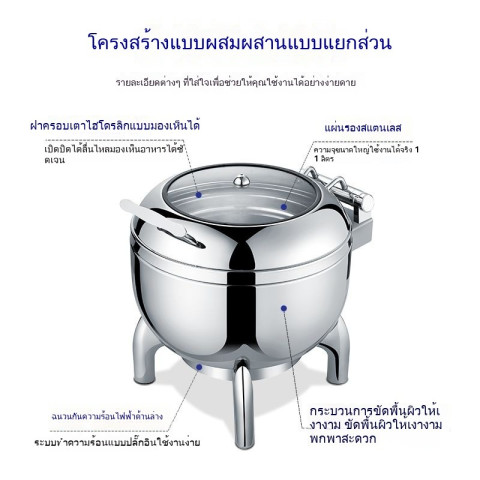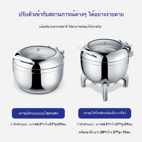ยกระดับไลน์บุฟเฟ่ต์และงานบริการอาหารให้ดูพรีเมียมด้วย ถังซุปสแตนเลส 304 พร้อมระบบทำความร้อนไฟฟ้า ออกแบบเพื่อการใช้งานเชิงพาณิชย์ในร้านอาหาร โรงแรม และเคเทอริ่ง ช่วยอุ่นซุปให้อยู่ในอุณหภูมิที่เหมาะสมอย่างต่อเนื่อง พร้อม ขาตั้งสำหรับตั้งโชว์ ให้จัดวางบนเคาน์เตอร์ได้สวยงาม ประหยัดพื้นที่ และเสิร์ฟได้อย่างมืออาชีพ