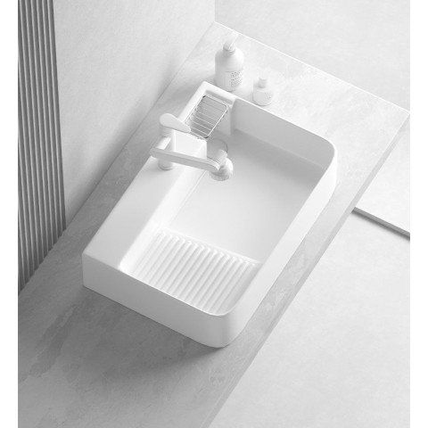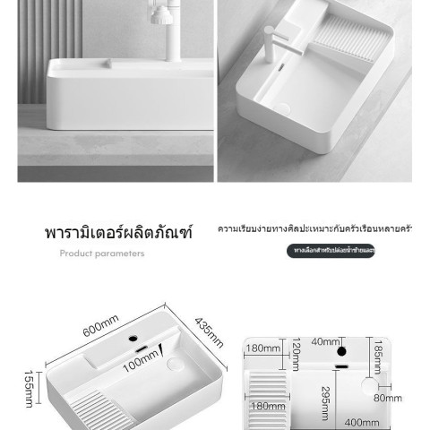 พร้อมแผ่นซัก อ่างล้างหน้าแบบตั้งพื้น อ่างล้างหน้าเซรามิก สำหรับพื้นที่ระเบียง/มุมซักล้าง ดีไซน์เรียบหรู รูปทรงไข่ ใช้งานได้ทั้งล้างมือและซักล้างในจุดเดียว ช่วยจัดพื้นที่ให้เป็นระเบียบ เหมาะสำหรับคอนโด บ้าน หรือมุมซักผ้าระเบียงที่ต้องการความลงตัวระหว่างความสวยงามและการใช้งานจริง ในราคา 6,213.00 บาท