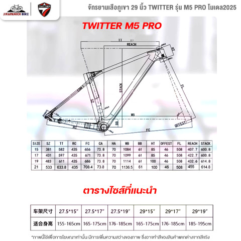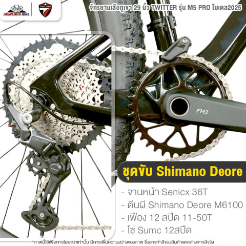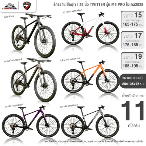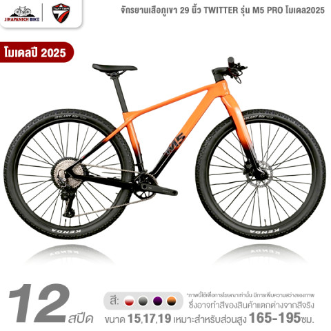 จักรยานเสือภูเขา 29 นิ้ว TWITTER รุ่น M5 PRO 12สปีด โมเดล2025 (เฟรม FullCarbon,เกียร์ Shimano Deore)