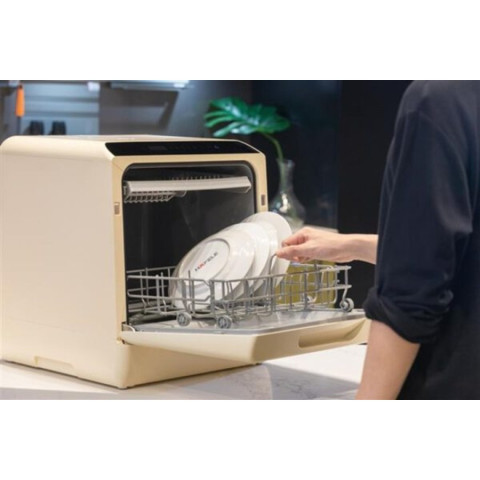 HAFELE 495.06.525 เครื่องล้างจานแบบตั้งเคาน์เตอร์ รุ่น Neo Mate สีครีม (NEO MATE SERIES Cream) ดีไซน์โค้งมนขนาดกะทัดรัด วางบนเคาน์เตอร์ครัวได้สบาย เหมาะสำหรับไลฟ์สไตล์คอนโดและบ้านที่ต้องการความสะดวก ประหยัดเวลาและแรงในการล้างจาน พร้อมโหมดล้างด้วยความร้อนสูงเพื่อความสะอาดมั่นใจยิ่งขึ้น