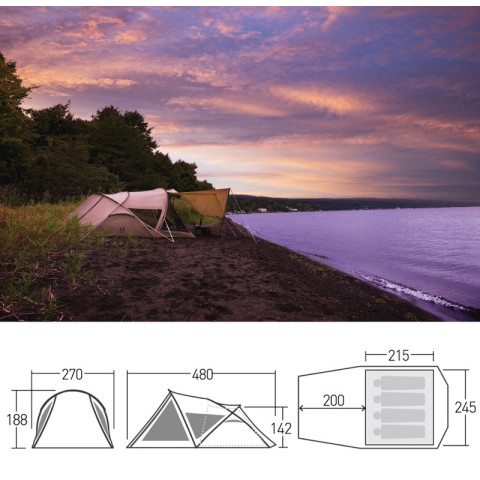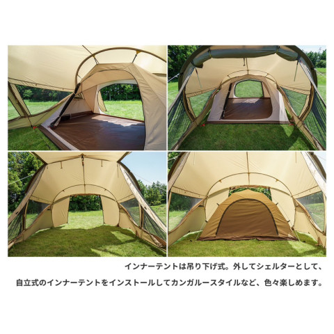 ด้วยดีไซน์ทรงสูงโปร่ง ให้พื้นที่ภายในกว้างขวาง เดินยืนในเต็นท์ได้สะดวก จัดเลย์เอาต์ภายในได้หลากหลาย ทั้งวางเตียงสนาม ที่นอนเป่าลม หรือจัดเป็นมุมนั่งเล่นสำหรับครอบครัวก็ทำได้สบาย ตัวเต็นท์ใช้โทนสี แซนด์เบจ x น้ำตาลเข้ม เข้ากับธรรมชาติ ดูอบอุ่นและหรูหราในเวลาเดียวกัน