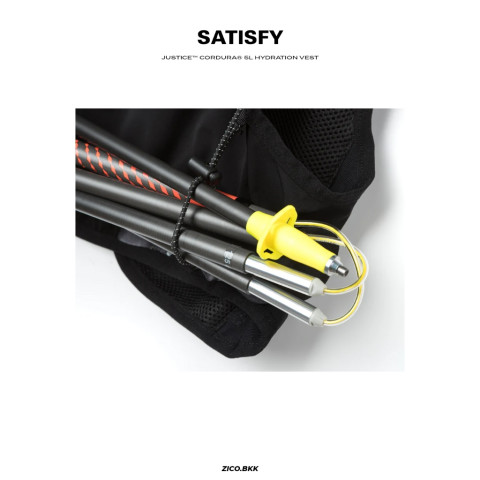 อุปกรณ์เสริม: HydraPak® soft flasks 500 มล. × 2, นกหวีดฉุกเฉิน, pole bungee สำหรับยึดไม้ค้ำ