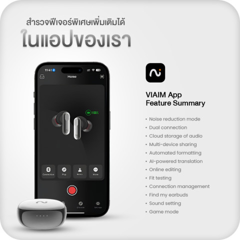 VIAIM Nano+ โดดเด่นด้วยความสามารถในการแปลภาษาเรียลไทม์ รองรับมากกว่า 11 ภาษา* ให้คุณสื่อสารกับชาวต่างชาติได้อย่างมั่นใจ นอกจากนี้ยังสามารถบันทึกเสียงการประชุม บทเรียน หรือบทสนทนา แล้วช่วยสรุปเนื้อหาให้เข้าใจง่าย ลดเวลาในการจดและทบทวนเชื่อมต่อเสถียร ใช้งานได้หลายอุปกรณ์พร้อมกัน