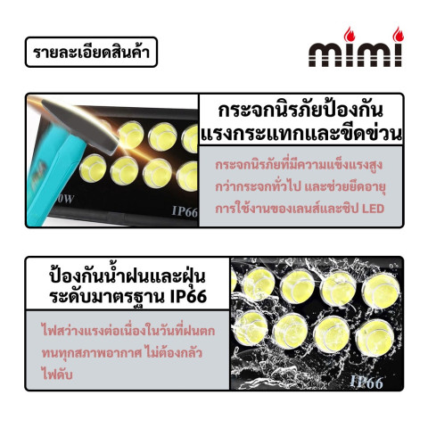 MIMI สปอตไลท์ LED Spotlight ชิป COB 500W แสงขาว 6500K สว่างพุ่งไกลแบบ “รุ่นตาโต” ให้ลำแสงทรงพลัง เหมาะสำหรับงานส่องสว่างพื้นที่กว้างทั้งภายในและภายนอกอาคาร ด้วยโครงสร้างอลูมิเนียมคุณภาพดีร่วมกับกระจก แข็งแรง ทนทาน ใช้งานคุ้มค่า พร้อมมาตรฐานกันฝุ่นกันน้ำระดับ IP65/IP66 ช่วยเพิ่มความมั่นใจเมื่อติดตั้งกลางแจ้ง