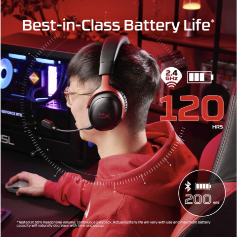 ใช้งานได้นานสูงสุด 120 ชั่วโมง เมื่อเชื่อมต่อแบบไร้สาย 2.4GHz และยาวสุด 200 ชั่วโมง เมื่อใช้งานโหมด Bluetooth ให้คุณโฟกัสกับเกม งาน หรือความบันเทิงได้ต่อเนื่องยาวๆเชื่อมต่อได้ 3 ทาง ใช้งานคล่องทุกอุปกรณ์